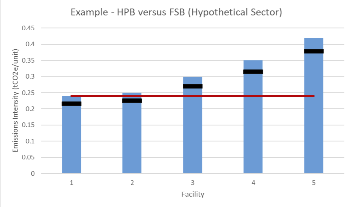 In 2019, operations no longer had to reduce emissions a percentage below the best-in-class HPB target for their sector. They only had to reduce their emissions based on the less stringent of the HPB or their own much higher emission levels. Of course, poor emission performers defaulted to facilities-based targets, dramatically reducing their compliance obligations.